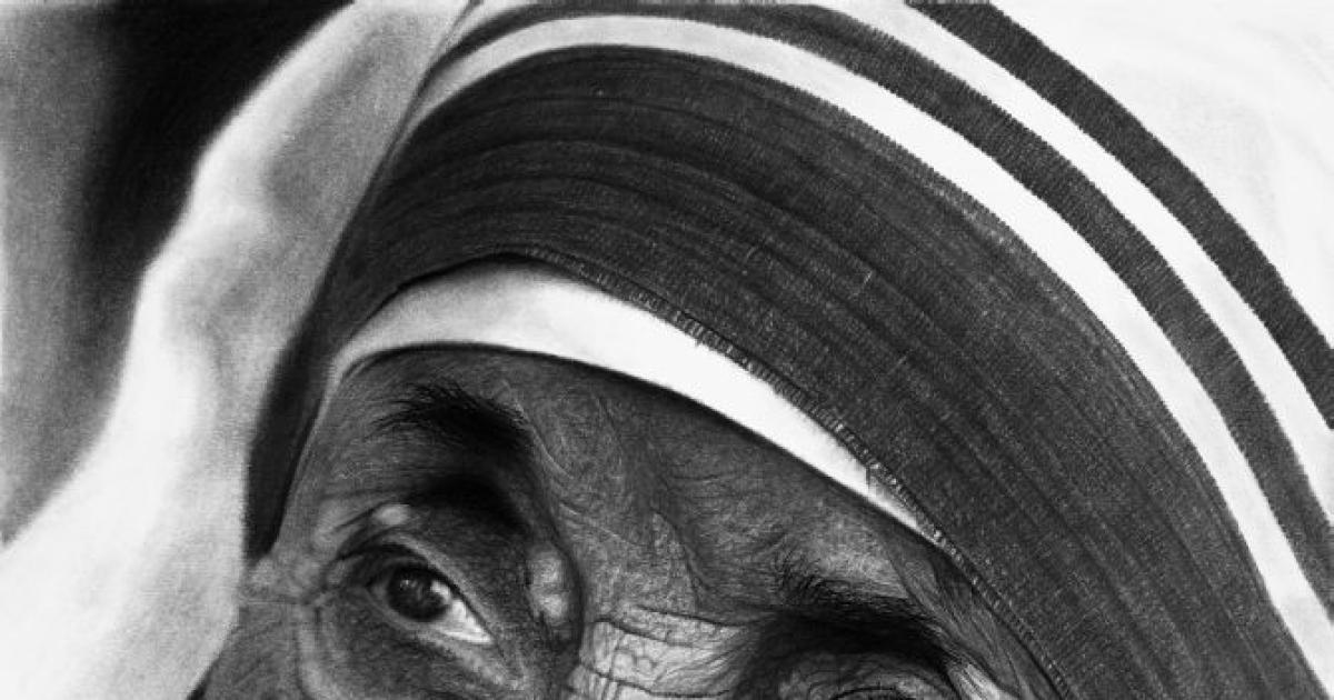 Look again! Well, you won't be wrong to assume this is a touching, intimate photograph of Mother Teresa, it is a pencil drawing by Kelvin. Stunning isn't it.