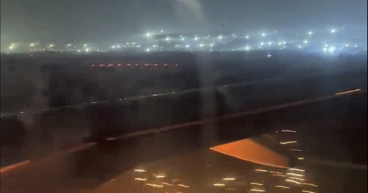 Videos on social media showed one of the plane's engines on fire and sparks flying at the time of taxiing at the airport.
