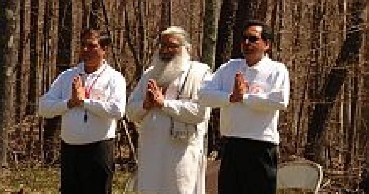 Image: Swami Madan with volunteers at the Panchvati ashram