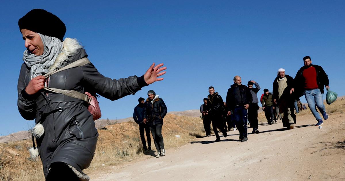 IMAGE: People walk towards Sednaya prison as the White Helmets search for prisoners imprisoned for years underground.