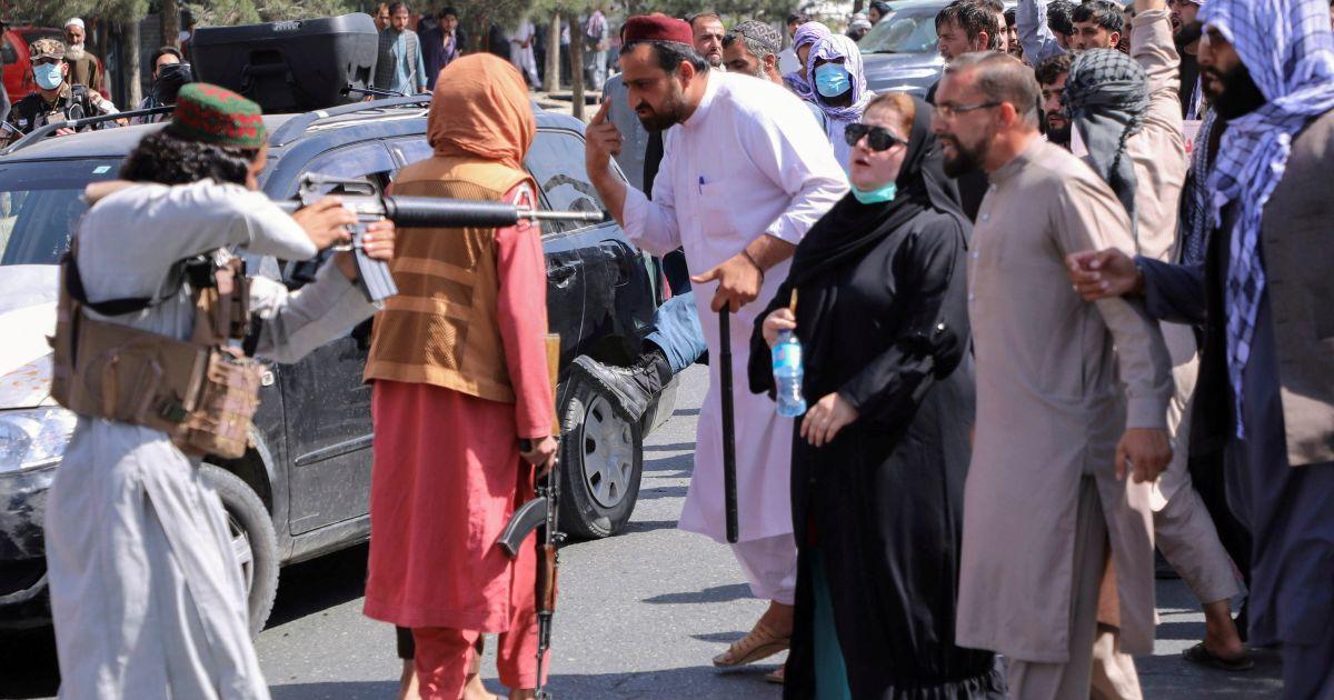 Amid chaotic scenes on the streets, Taliban fighters intervened and shot into the air to disperse the protesters.