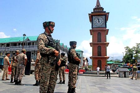 Security personnel keep a vigil in Srinagar on the occasion of the 6th anniversary.
