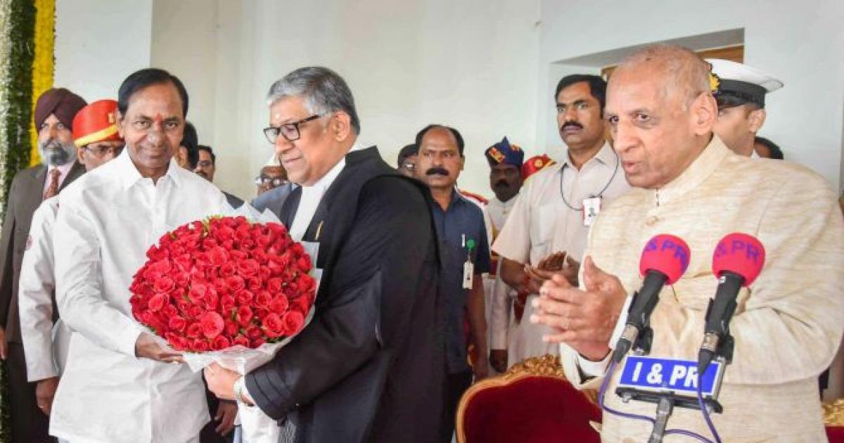 Radhakrishnan was sworn in as the chief justice of the Telangana high court by Narasimhan at the Raj Bhavan in Hyderabad. Later, the chief justice administered oath to 12 judges of the high court in the court premises. Chandrashekar Rao was also present at the swearing-in of the other judges.