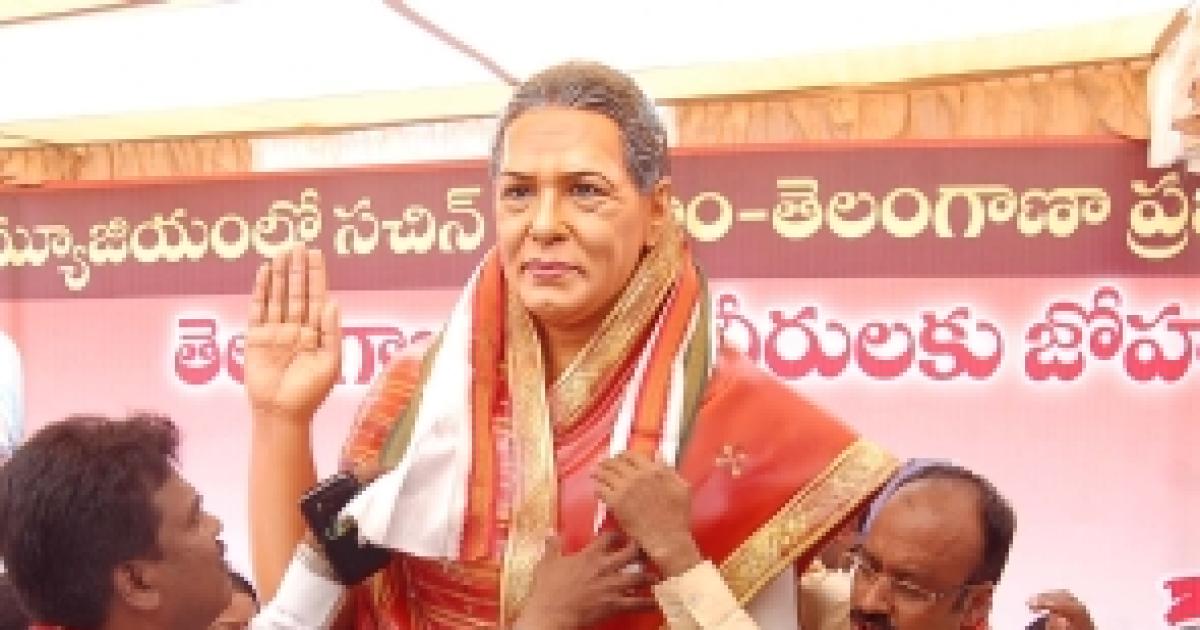 Image: Pro-Telangana Congress members unveil a statue of party president Sonia Gandhi ' Photograph: SnapsIndia