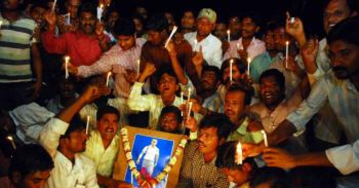 Yadaiah, who suffered 80 percent burns, died in the early hours of Sunday in DRDO Apollo Hospital. When his body was brought to the village in a van, angry and emotional villagers received it with slogans of "Jai Telangana".