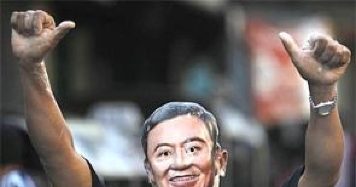 Image: A Red Shirt supporter wears a Thaksin Shinawatra mask during protests in Bangkok Photographs: Caren Firouz/Reuters