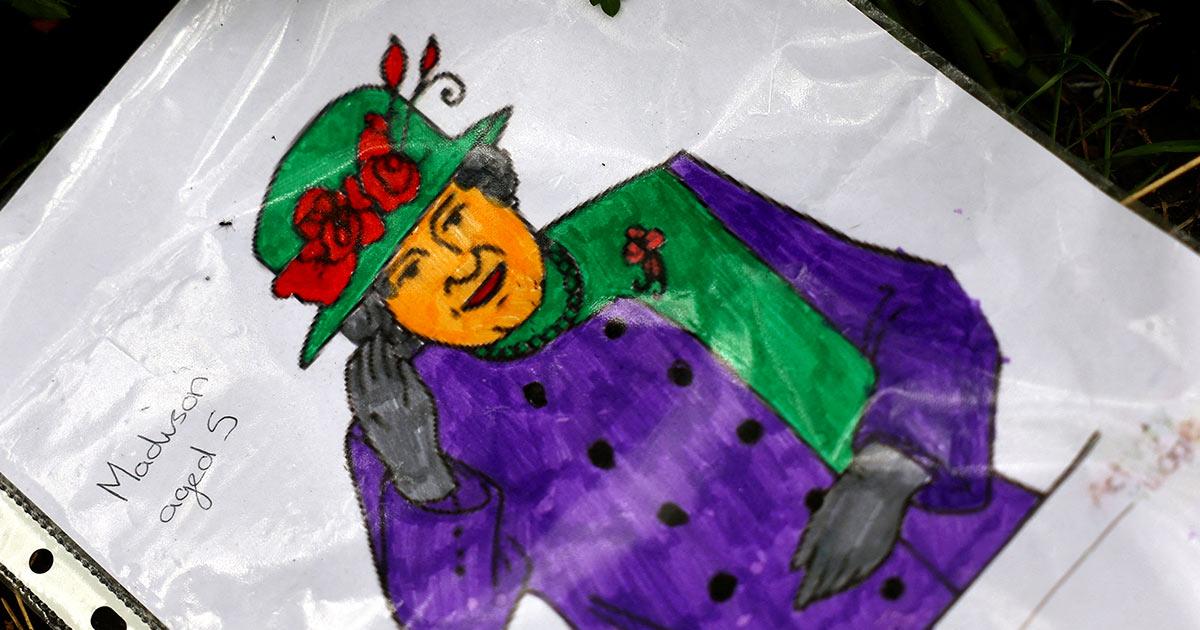 Some of the handwritten and drawn tribute messages for Britain's Queen Elizabeth at Green Park in London.