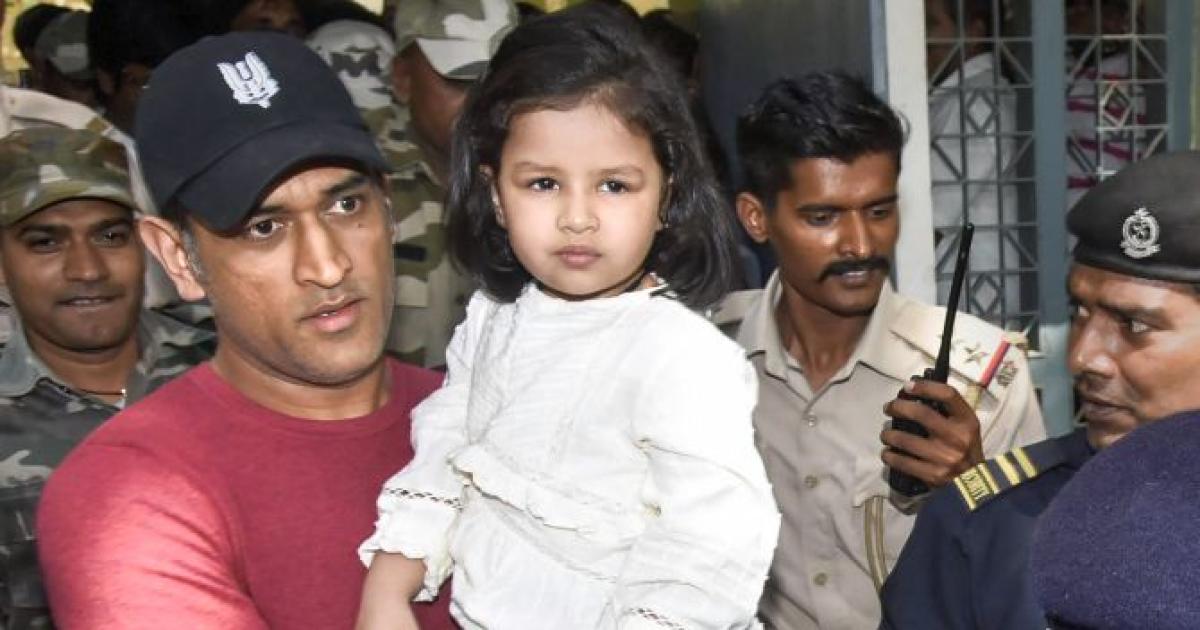 Cricketer Mahendra Singh Dhoni with his daughter Ziva at a polling booth in Ranchi, Jharkhand. Photograph: PTI Photo