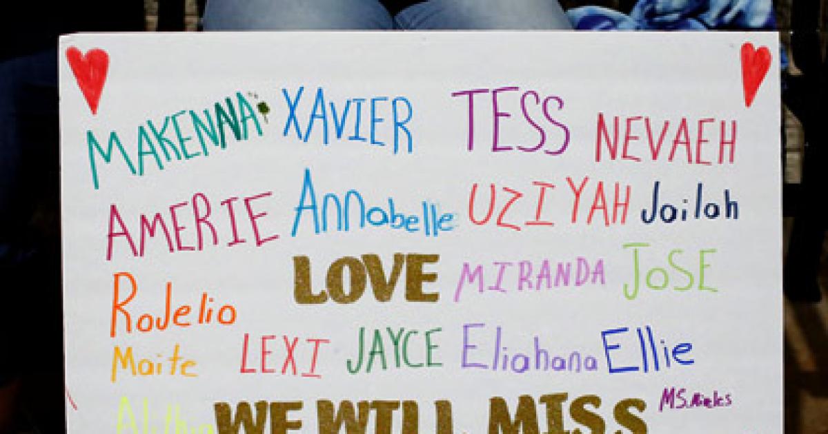 IMAGE: Stormy Flores holds a sign with the names of the victims during the vigil, May 25, 2022.