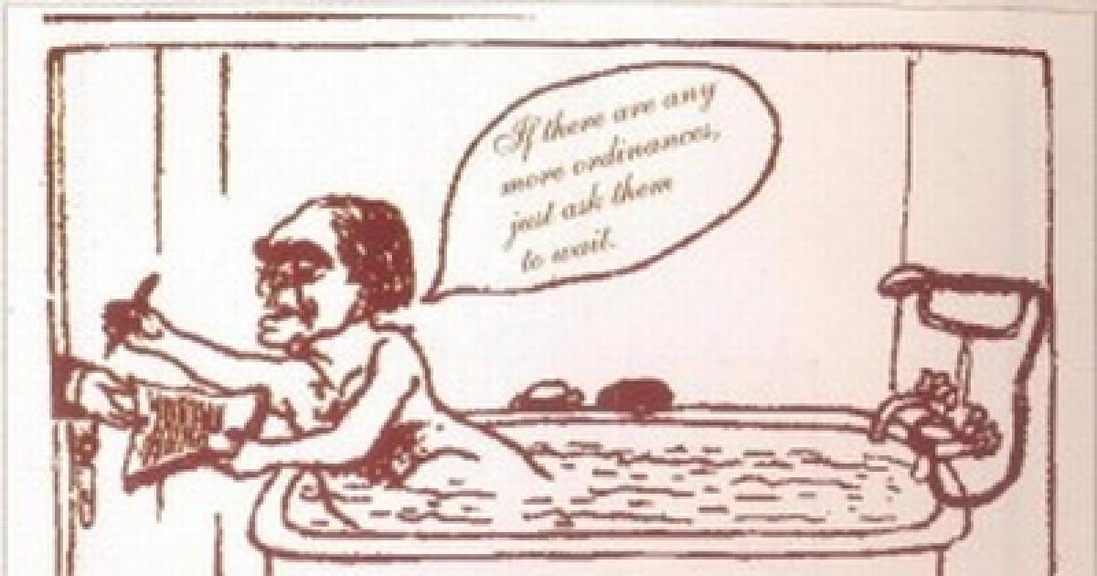 This cartoon reminds me of Abu’s famous cartoon during the 1975-77 Emergency depicting Rashtrpati Fakhruddin Ali Ahmed in a bathtub, telling one of his aides who is handing him a document to sign, “If there are any more ordinances, just ask them to wait.”