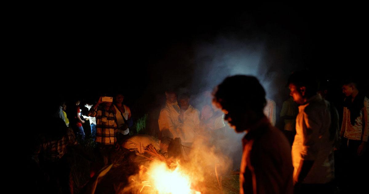 IMAGE: Relatives and neighbours cremate Kamlesh Jatav, 22, here and below. All photographs: Anushree Fadnavis/Reuters