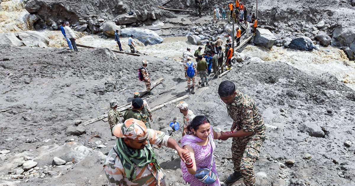 IMAGE: Indian Army, State Disaster Force, police and local administration carry out a search and rescue operation in flash flood-hit Chasoti in Kishtwar. Photograph: ANI Video Grab