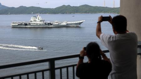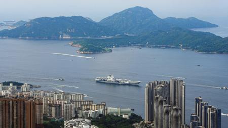 The People's Liberation Army Navy's aircraft carrier Shandong -- China's first domestically built aircraft carrier -- sailed into Hong Kong during a five-day visit, July 3, 2025..