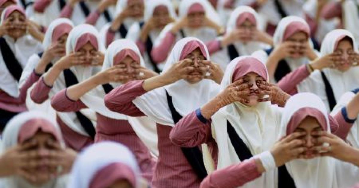 Image: A group of Muslim girls do yoga in school. Photograph used for representational purposes only.