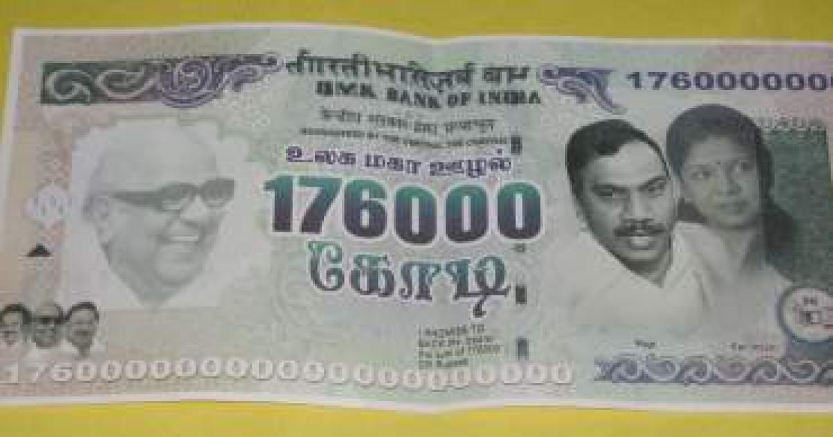 The AIADMK notice looks like a Rs 100 note, but it is actually a note for 176,000 crores. It says, "I promise to back the bearer the sum of Rs 176,000 crore."