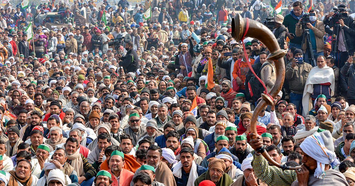 Tens of thousands of farmers gathered in Muzaffarnagar town on Friday to attend a mahapanchayat in support of the Bharatiya Kisan Union-led protest against the Centre's new farm laws in Ghazipur on the Delhi-Uttar Pradesh border.