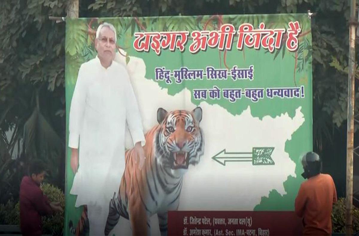 The image of Kumar standing calmly, while a tiger crouches beside him reinforced a long-running political metaphor JD-U supporters invoke whenever questions over his political longevity emerge.
