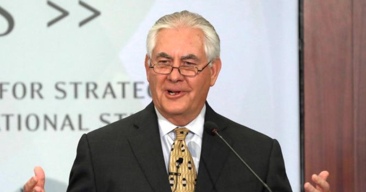 IMAGE: US Secretary of State Rex Tillerson speaks about the US relationship with India for the Next Century at the Centre for Strategic and International Studies, a Washington, DC think-tank, October 18, 2017. Photograph: Yuri Gripas/Reuters