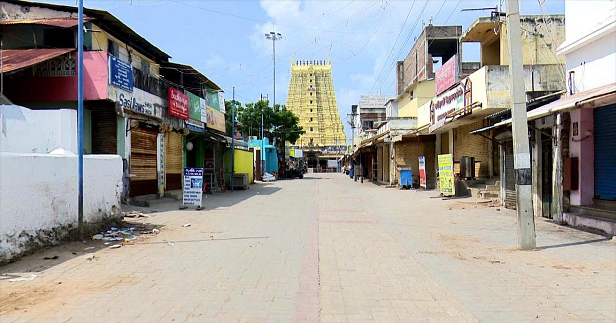 IMAGE: A deserted view of a street as Rameswaram observes the third consecutive Sunday lockdown, in view of rising Coronavirus cases in Tamil Nadu, January 23, 2022. Photograph: ANI Photo