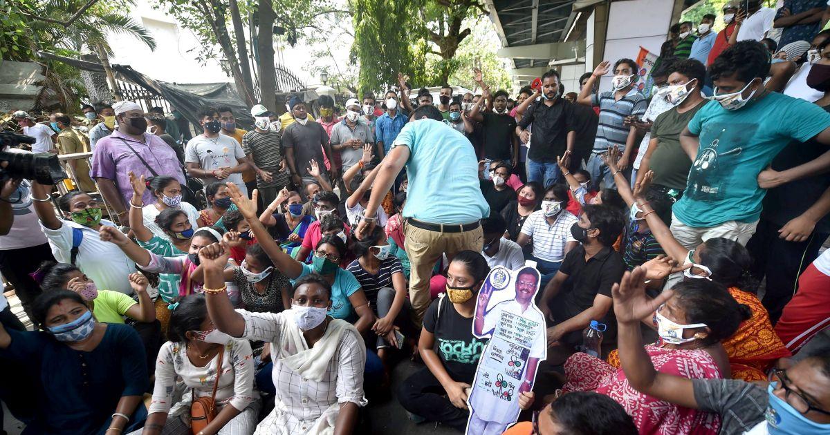 Holding party flags and shouting slogans against Dhankhar, a group of TMC activists demonstrated outside the two gates of Raj Bhavan in Kolkata.
