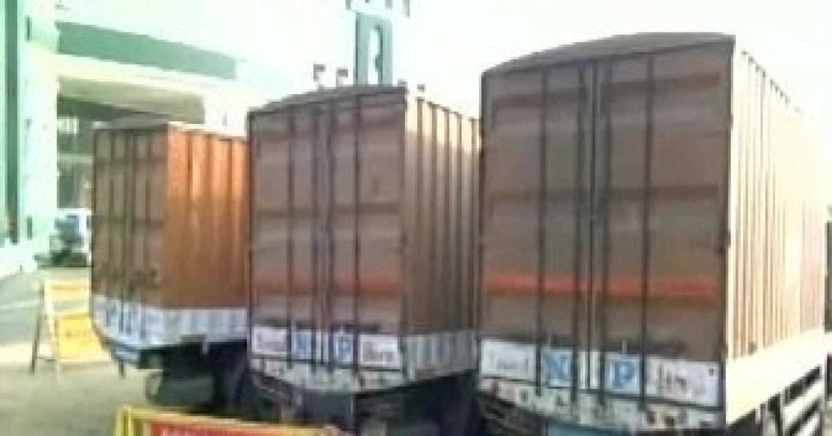 The Election Commission on Saturday morning stopped three trucks purportedly transferring Rs. 570 crores in poll-bound Tamil Nadu's Tiruppur district.