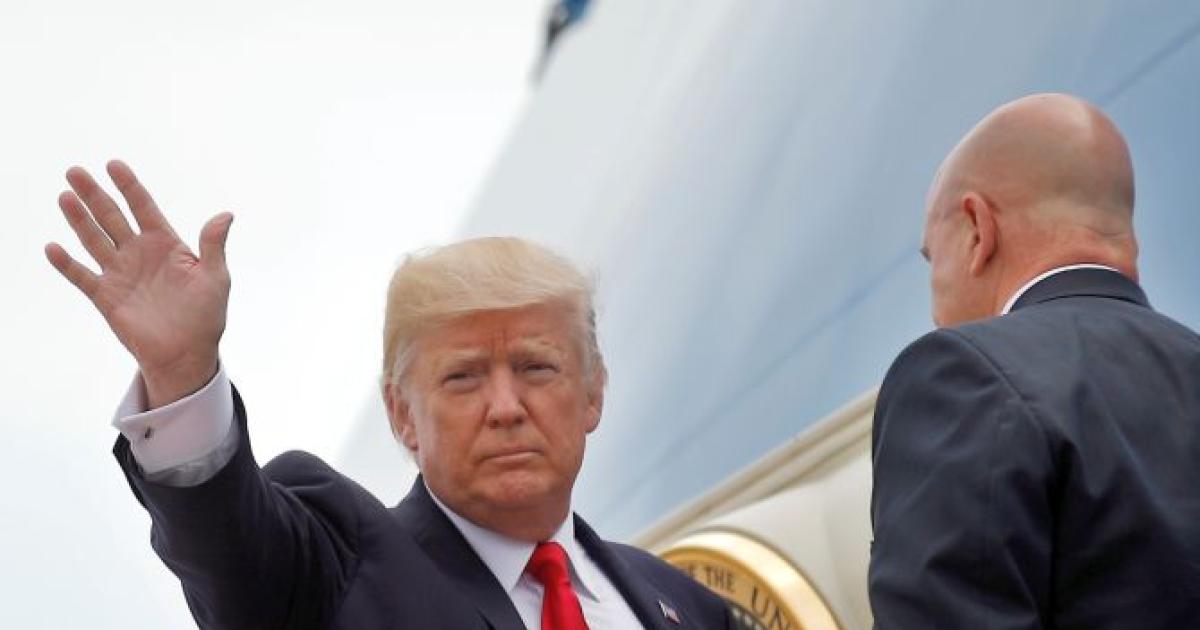 Image: US President Donald Trump and White House National Security Advisor HR McMaster board Air Force One. Photograph: Carlos Barria/Reuters