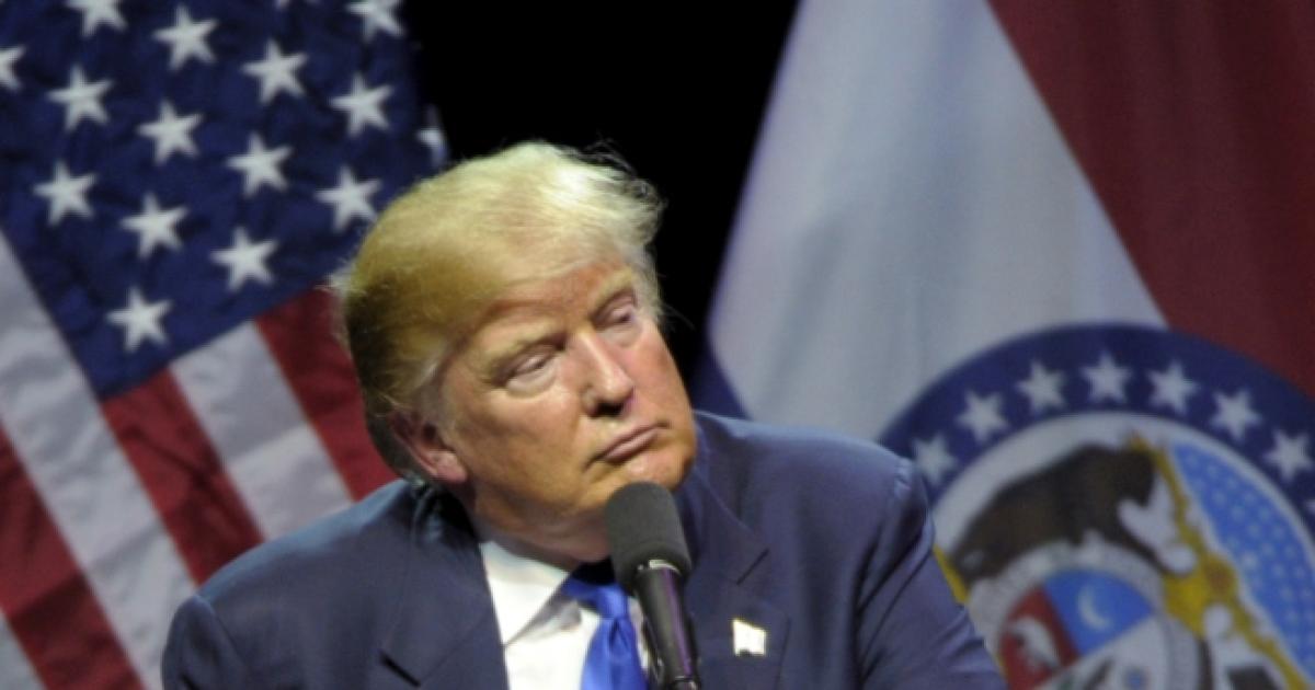 Image: US Republican presidential candidate Donald Trump stops speaking as a protester yells during a campaign rally at the downtown Midland Theater in Kansas City, Missouri.Photograph: Dave Kaup/Reuters