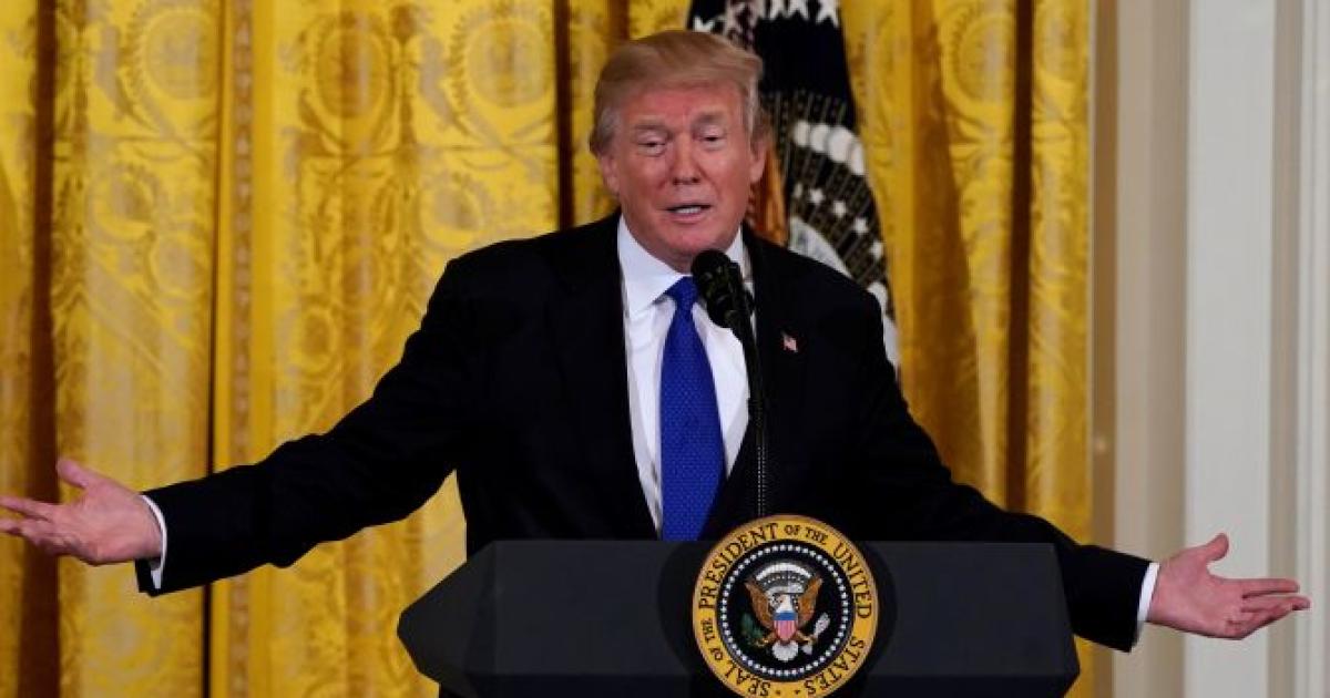Image: US President Donald Trump speaks at a working session with mayors at the White House in Washington. Photograph; Yuri Gripas/Reuters