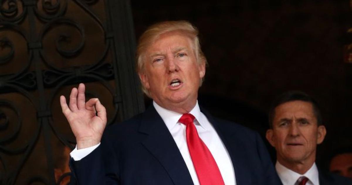 IMAGE: US President Donald Trump talks to the media as retired Lieutenant General Michael Flynn stands next to him at Mar-a-Lago estate in Palm Beach, Florida. Photograph: Carlos Barria/Reuters