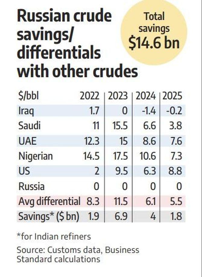 In the near term, India has been boxed into a corner. Srivastava says the elimination of the 25 per cent Russian oil tariff will bring back $25 billion in Indian exports, as against the $13 billion in savings from buying Russian oil.