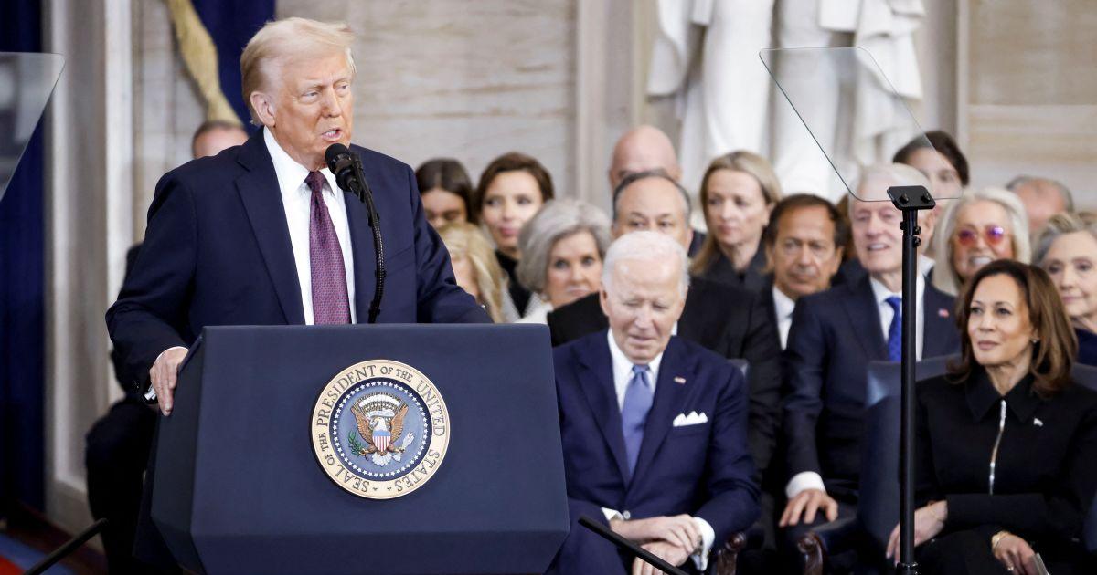 IMAGE: Donald Trump delivers remarks after being sworn in as the 47th President of the United States in an inauguration ceremony in the rotunda of the United States Capitol in Washington, DC, on January 20, 2025. Photograph: Shawn Thew/Pool via Reuters