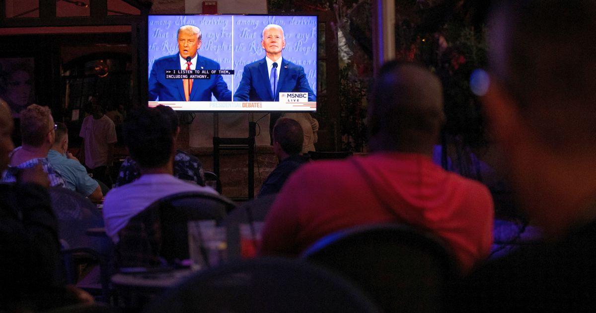 IMAGE: A television screen broadcasts the second 2020 presidential campaign debate between Democratic presidential nominee Joe Biden and US President Donald Trump at The Abbey Bar during the outbreak of the coronavirus disease in West Hollywood, California. Photograph: Mario Anzuoni/Reuters
