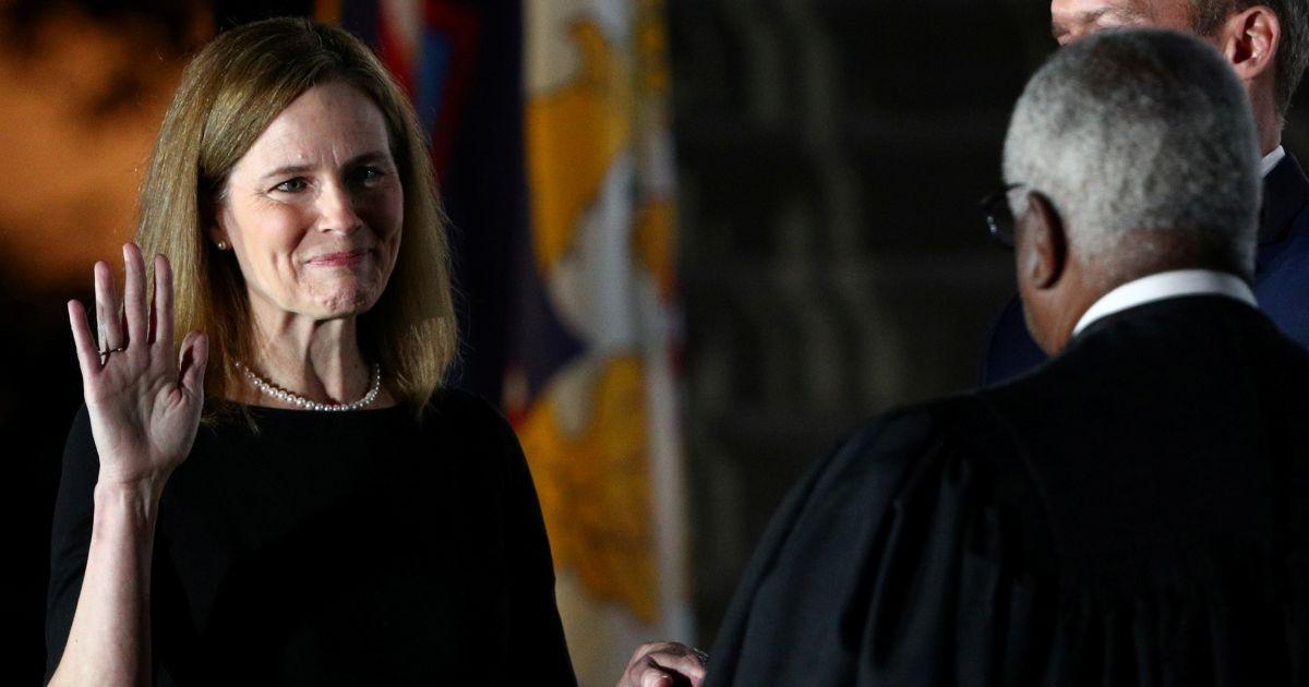 Barrett, a 48-year-old religious conservative, was administered the official constitutional oath by Justice Clarence Thomas on the South Lawn of the White House alongside President Trump.