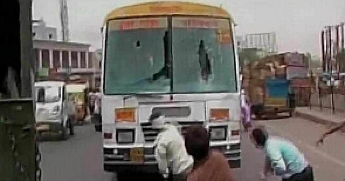 Image: Protestors hurled bricks at a bus in Firozabad, Uttar Pradesh