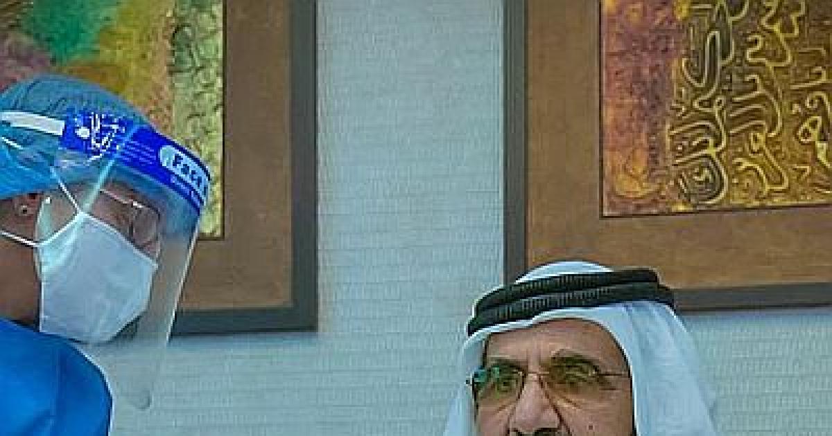 Sheikh Mohammed shared a picture on Twitter of him getting vaccinated by a medical staffer.