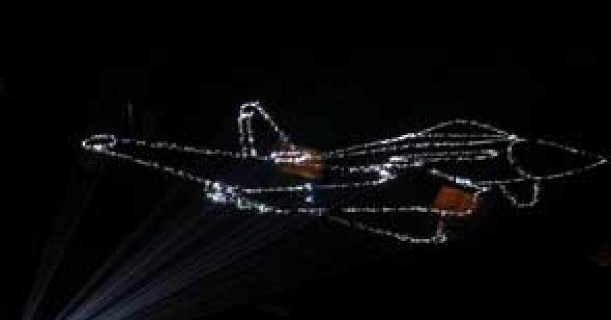 Image: The image of an Eurofighter Typhoon is projected in the air by a laser show | Photograph: Michaela Rehle/Reuters