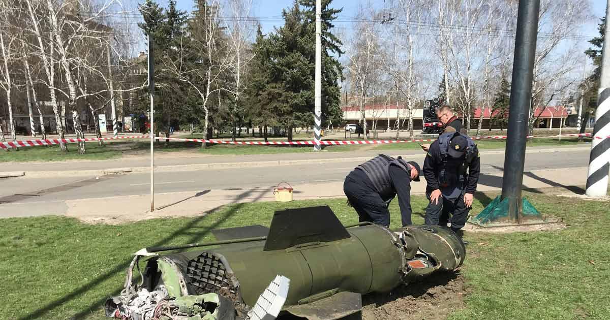 IMAGE: The remains of a Russian missile near the rail station in Kramatorsk. Photograph: Reuters