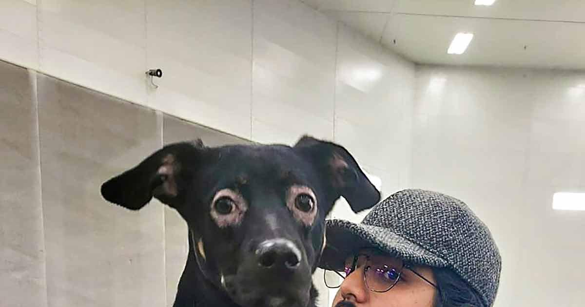 IMAGE: Rishabh, evacuated from the Ukraine, arrives with Malibu at the Indian Air Force's Hindon Air Force Station in Ghaziabad.