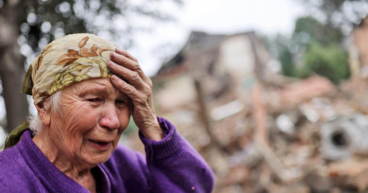 IMAGE: Raisa Shapoval, 83, weeps in Chuhuiv, about 6 km from the frontline in the Kharkiv region. Photograph: Nacho Doce/Reuters