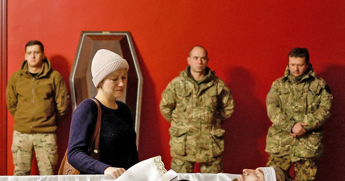 IMAGE: Colleagues and friends attend a funeral ceremony for Ukrainian soldier and ballet dancer Vadym Khlupianets, who was recently killed by Russian troops, at the National Academic Operetta's Theatre in Kyiv. Photograph: Valentyn Ogirenko/Reuters