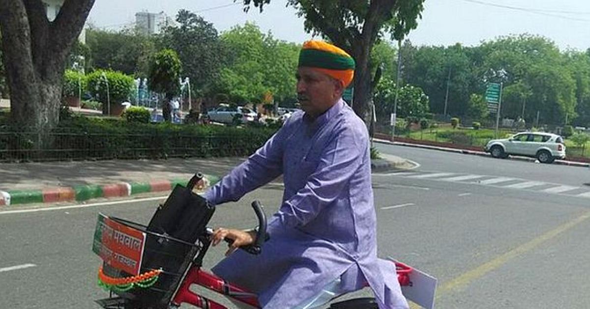Meghwal, who is over 60 years old, has been receiving mixed reactions for his novel effort from party colleagues and parliamentarians. But he remains unfazed and continues to cycle from his bungalow everyday to the Parliament and back.