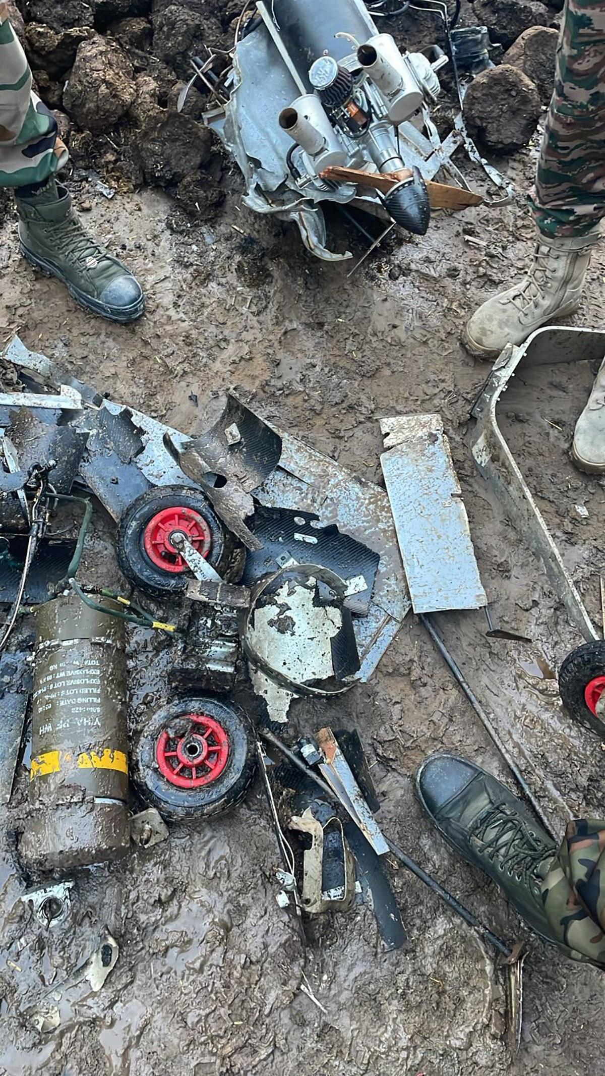 In Ferozepur, three members of a family were injured on Friday night after a crashing projectile from a Pakistani drone destroyed by Indian air defence system landed at their house at Khai Pheme Ke village, setting the structure and a car on fire.