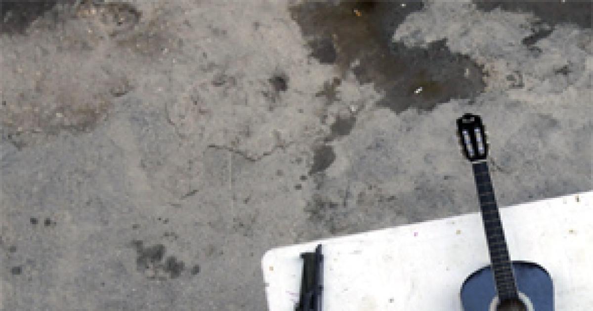 Image: A guitar lies next to a weapon on a table while Free Syrian Army fighters rest in Ashrafieh, Aleppo ' Photograph: Muzaffar Salman/Reuters