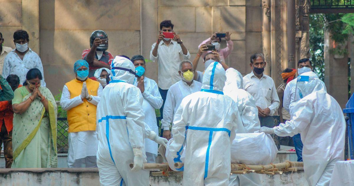 The ambulance carrying her body wrapped in plastic reached the crematorium at 2 pm where family members, Bharatiya Janata Party colleagues and senior police and administration officials waited to pay their respects from a distance.