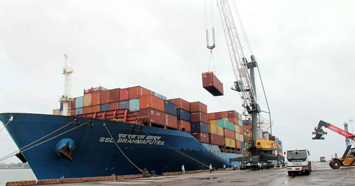 IMAGE: A large container vessel arrive at New Mangalore Port. Photograph: ANI Photo