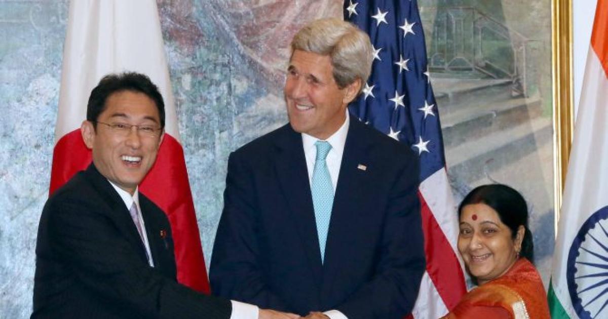 The meeting was attended by External Affairs Minister Sushma Swaraj, her Japanese counterpart Fumio Kishida and US Secretary of State John Kerry.