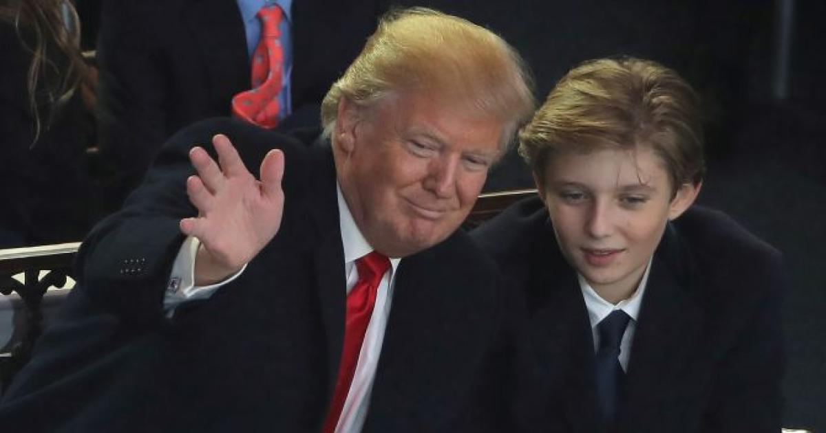 IMAGE: US President Donald Trump and his son Barron attend the Inaugural Parade in Washington. Photograph: Carlos Barria/Reuters