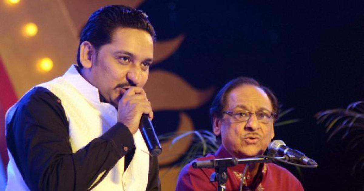 Image: Pakistani ghazal singer Ghulam Ali with son Aamir Ali performs in Lucknow on Sunday. Photograph: PTI
