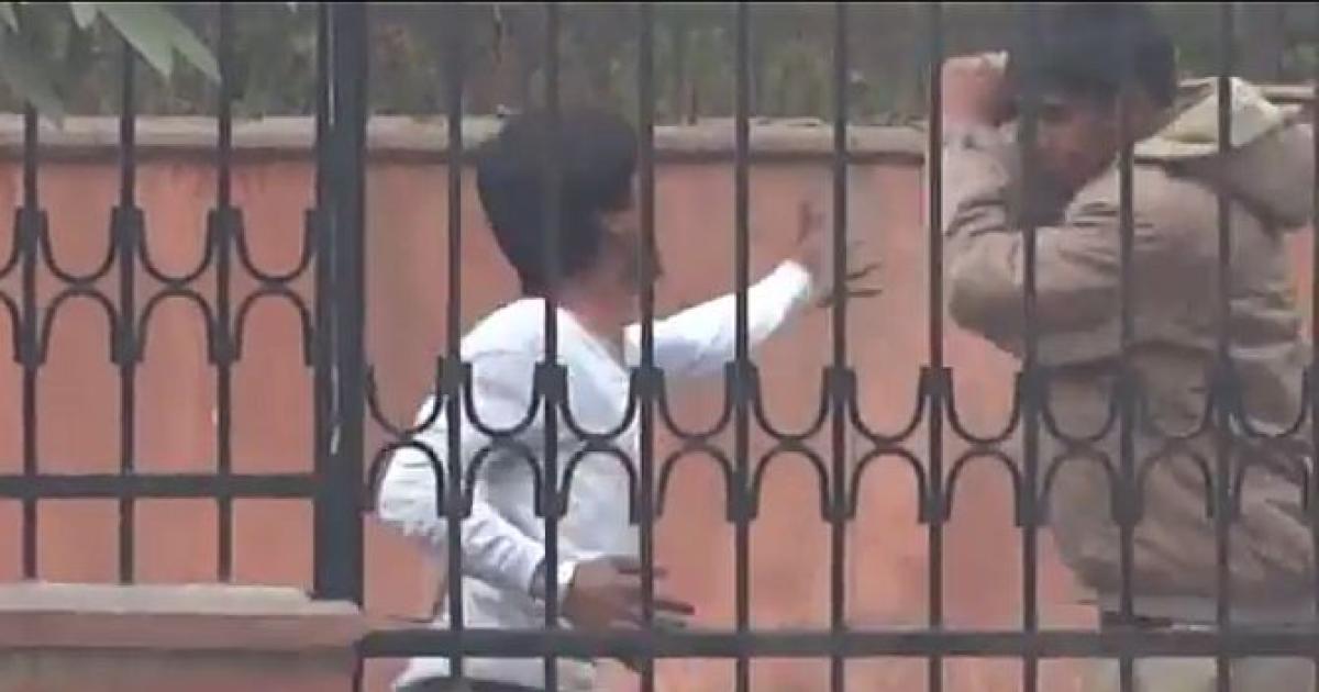 The video shows the constables beating up man near Lal Qila (Red Fort).