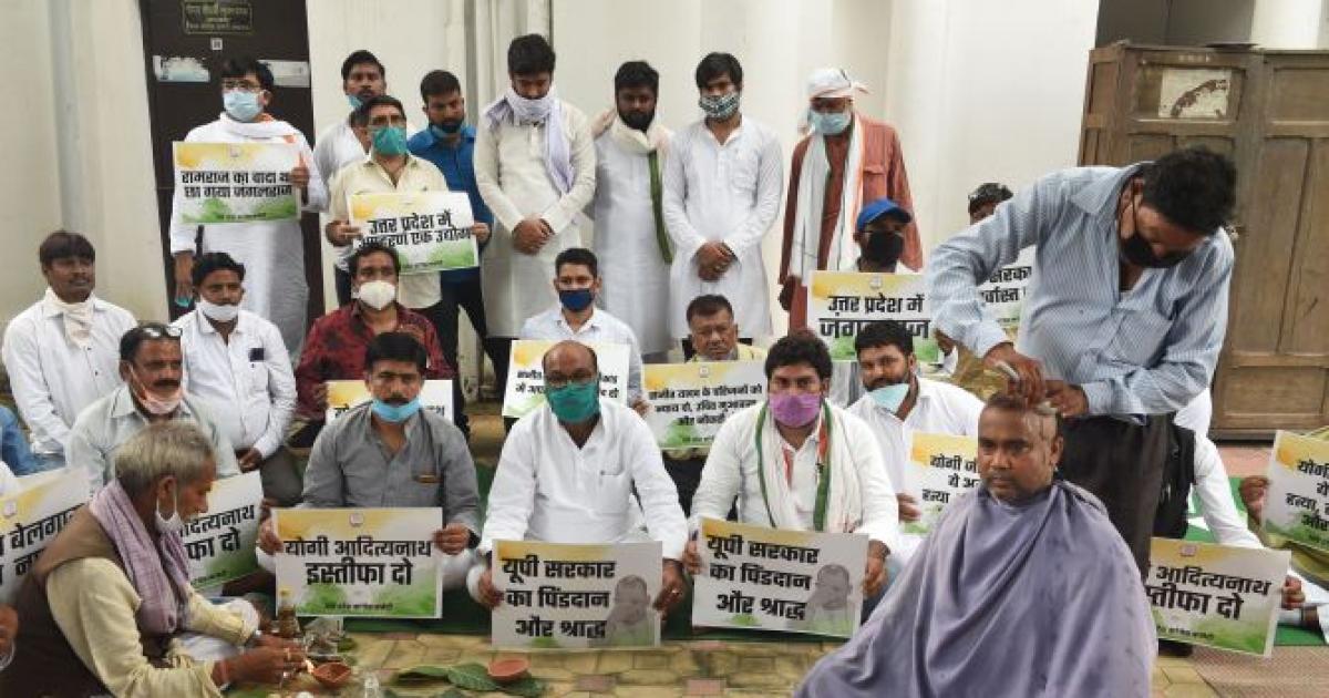 Its activists congregated at Lucknow's arterial Hazratganj to protest the Yogi Adityanath government's 'failures' on various fronts, including law and order.